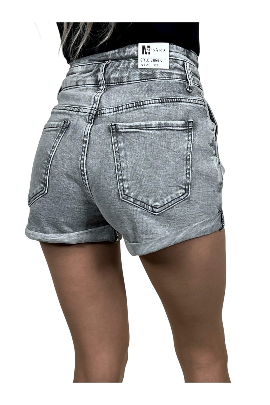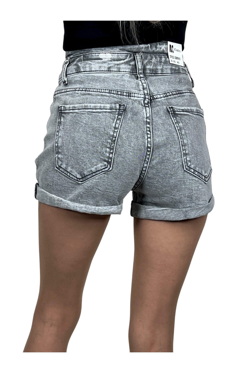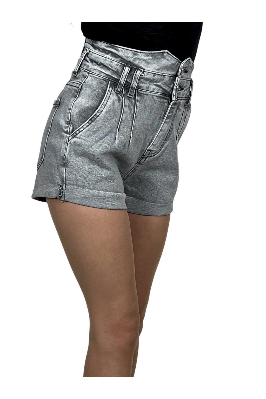 Dámské šedé džínové kraťasy s vyšším pasem ADRIANA