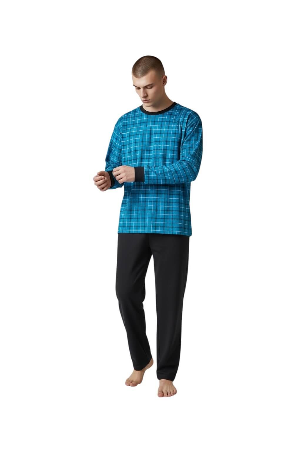 Pánské nadměrné bavlněné pyžamo s dlouhým rukávem NERO