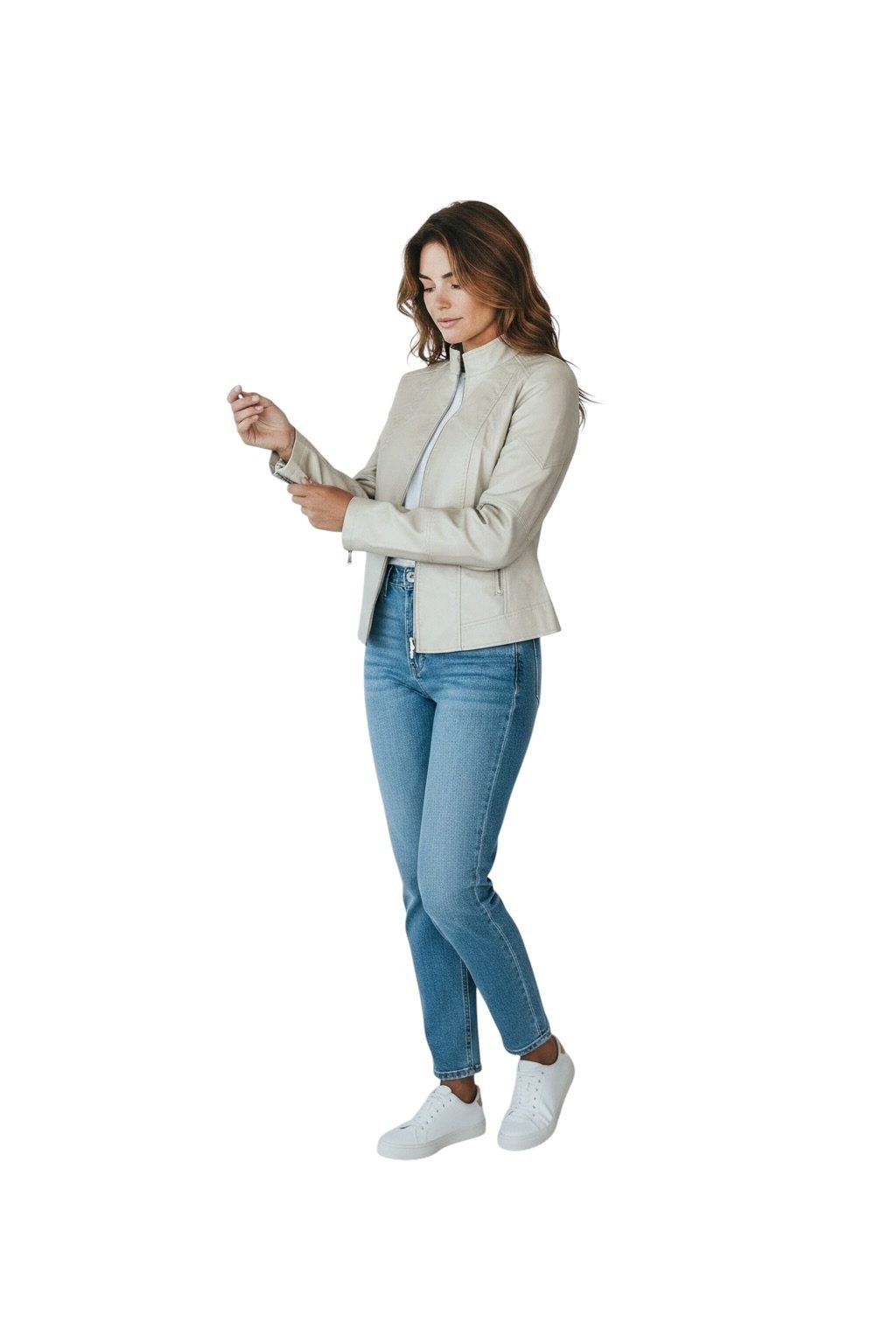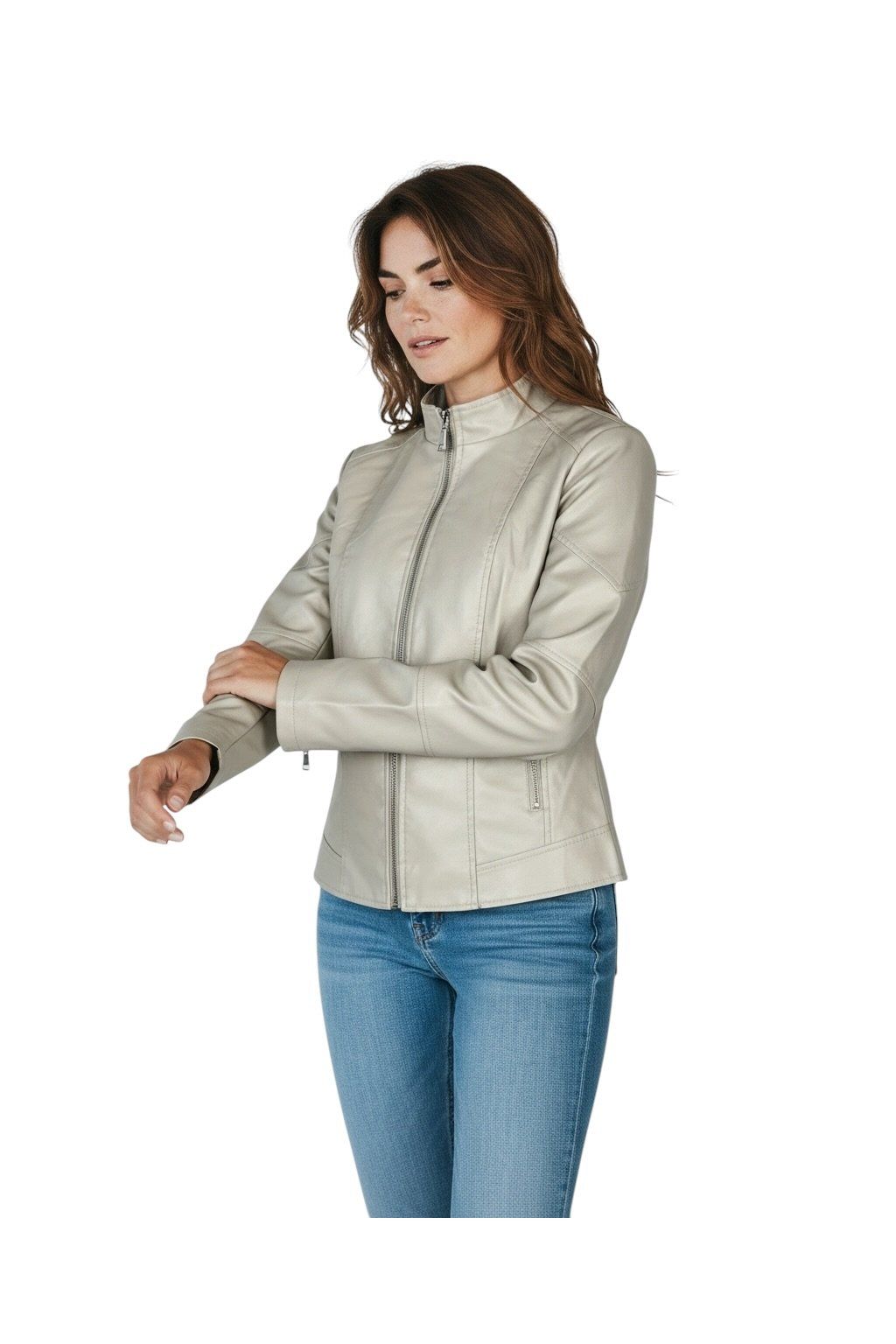 Dámská bílá koženková bunda 03