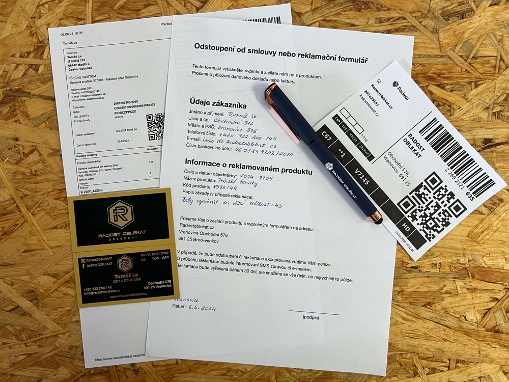 Zásielku odošlite na našu adresu: Radostoblekat.cz Obchodní 576 691 25 Vranovice Brno-venkov. Náklady na poštovné a balné hradíte vy, ale veríme, že spolu nájdeme spravodlivé riešenie.